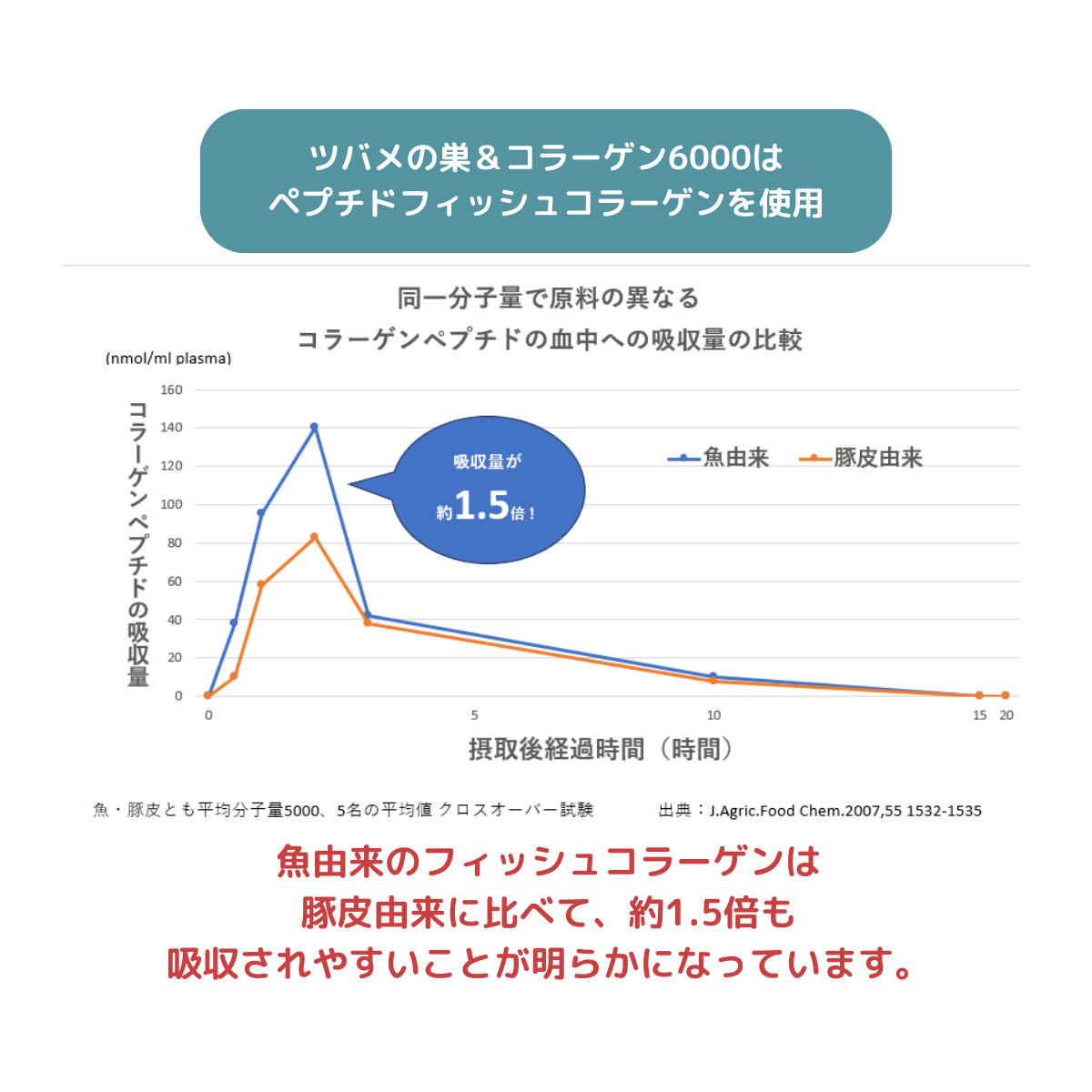 コラーゲンには牛や豚などの動物由来のものと、魚由来の物がありますが、魚由来の方が約1.5倍も吸収率が高いことが明らかになっています。