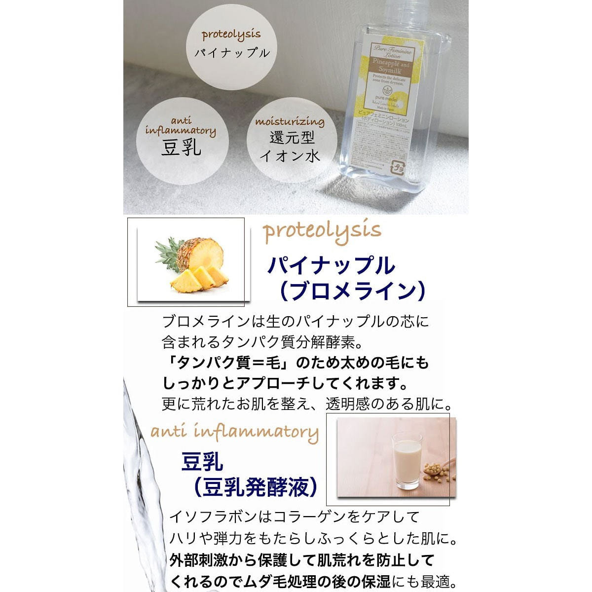 ムダ毛ケアの定番「パイナップル豆乳ローション」を成分とし、デリケートゾーン専用の商品を開発しました。